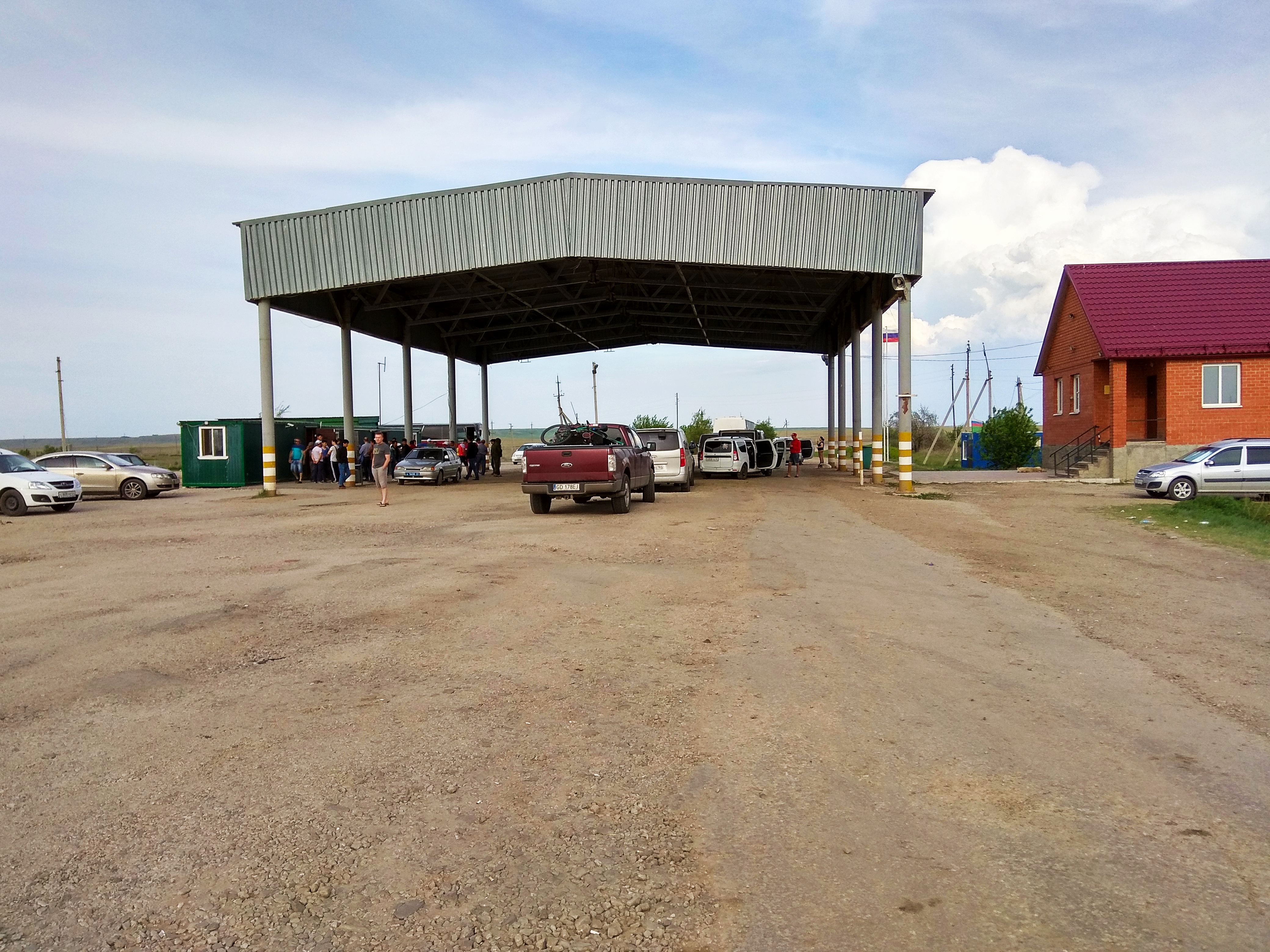 Na początku po prostu pojechaliśmy dalej. Wszystko wyglądało, jak karawanseraj, ot – blaszany daszek, jakieś zabudowania, parę wozów, autobusy… Zostało to za nami, nawet nie zaszczycone dłuższym spojrzeniem. Po kilku kilometrach jednakże rzut oka na mapę ujawnił, że coś było nie tak z naszą marszrutą. Wróciliśmy do karawanseraju, który okazał się forpocztą posterunku granicznego federacji rosyjskiej.